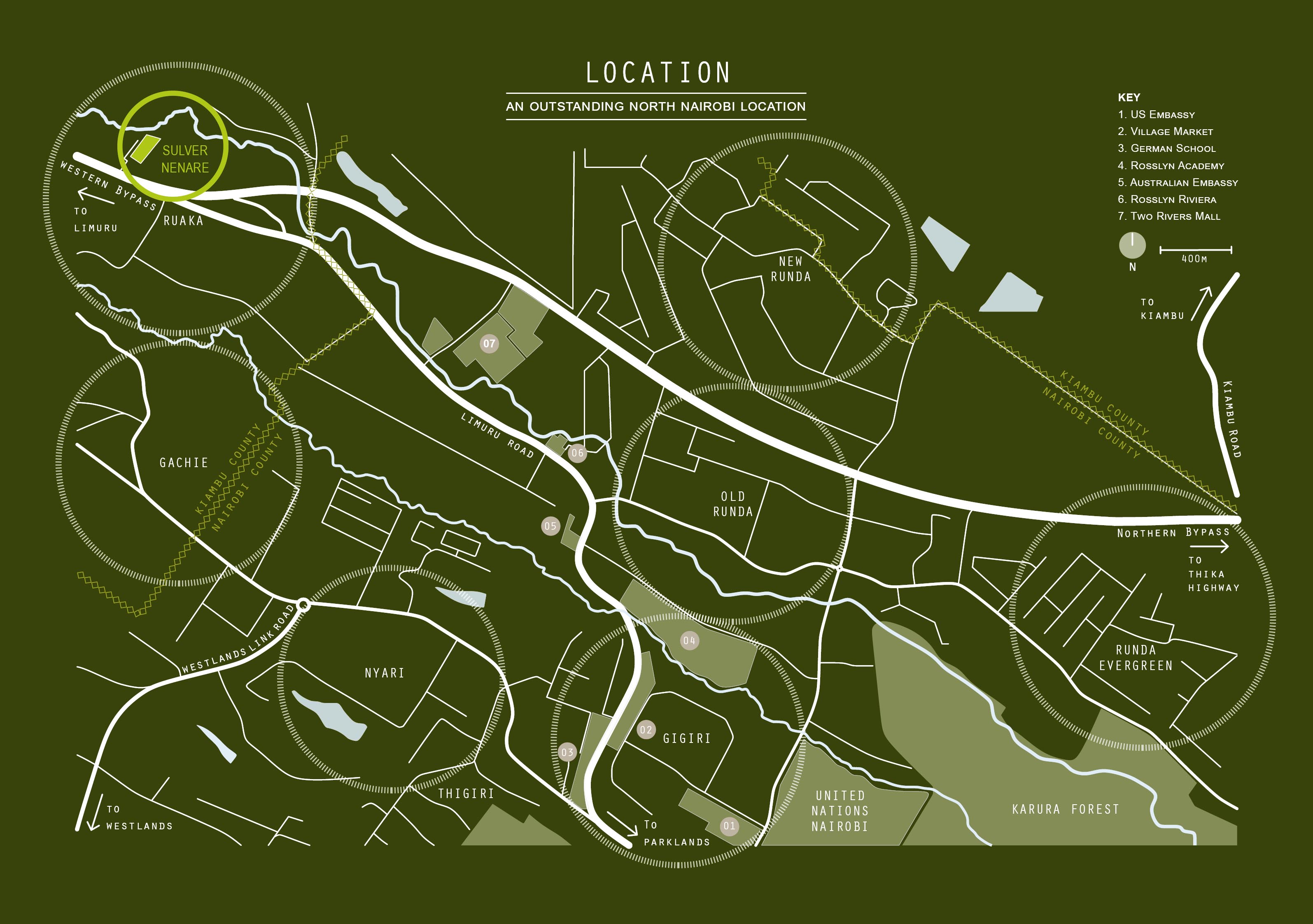 + 5 minutes drive from Two Rivers, United Nations and the Village Market